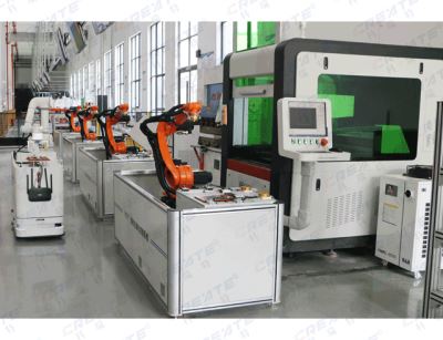 钣金激光加工智能制造系统打造一个由:复合移动机器人,金属激光切割机,数控折弯机,小型激光焊接机,激光打标机,线边仓库,AGV暂存平台,折弯定位装置,上下料工业机器人,工业机器人快换夹具,变位机,生产制造执行系统(MES),5G通讯网关及云服务,可视化信息显示系统,工作单元网络化控制系统等组成的全过程自动化和智能化加工生产的智能制造系统。