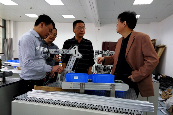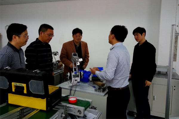 而后大家又来到工业机器人实训基地参观了教学实践设备与环境,看着详细到图纸、零部件 、电子电路、工作台的学习条件,随行的谭院长赞赏地说道:“看过这么多企业培训基地,你们科瑞特是 最大气的,这么多关键的技术资料都完全对学生开放,真正做到了传道授业解惑,毫无保留,难怪教学效果如此 之好!”